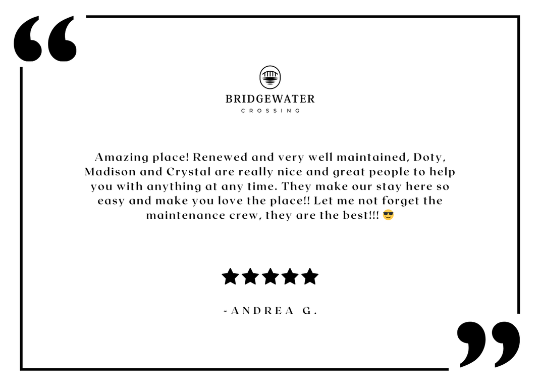 Nestled in a prime location near Bridgewater Falls, you’ll have easy access to the best shopping, dining, and entertainment in town. Come see why Bridgewater Crossing is the perfect place to call home—schedule your tour today!